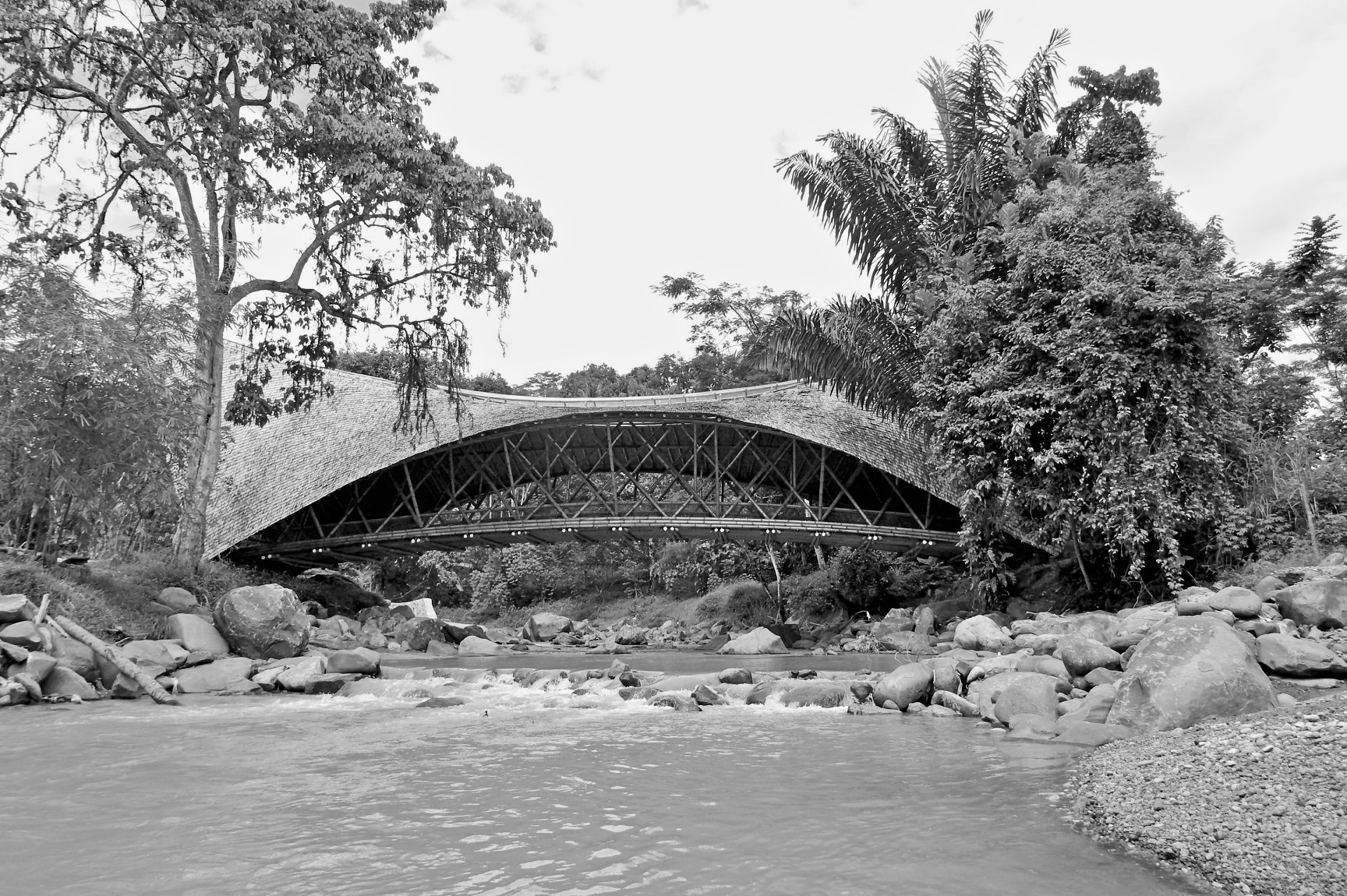 Located in North Sumatra,Sibolangit, sitting delicately over the Sungai Tengah, is the longest bamboo bridge in Asia at a 30m span. Designed for vehicles up to 2ton and a pedestrians, it is a seductive entrance to a 48ha Orangutan Haven Learning Center.